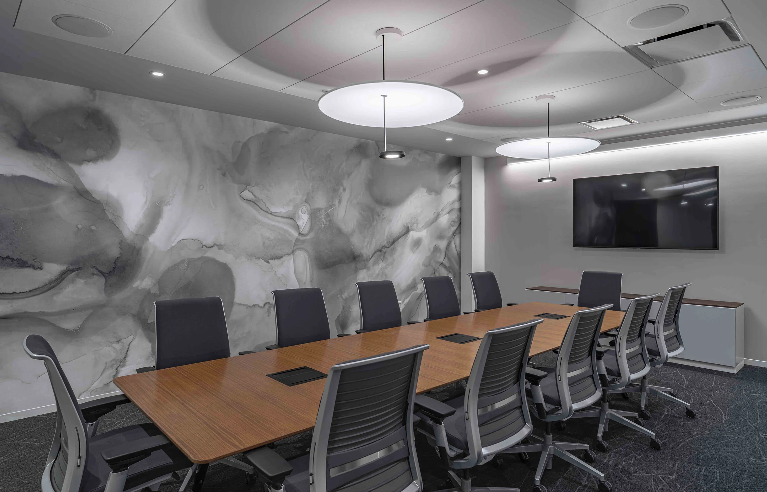 GKV Architects designed an advertising agency’s new offices located in the heart of New York City. This advertising agency’s office spans approximately 22,000 sf with open views of the city. The overall design approach was to create a creative open office with comfortable, flexible spaces that can be used for collaboration and team meetings. The reception area incorporates art and a bespoke sculptural desk, creating hospitality-like settings. To prevent the open office plan from looking monotonous, we captured certain areas and made them distinct to create interesting moments and experiences throughout the space. GKV designed an open lounge area with custom banquettes that can be used for working or breakout spaces. This area includes a sleek coffee bar and soft lounge seating. There is also a full pantry that gives the office a pop of color and retro vibe.